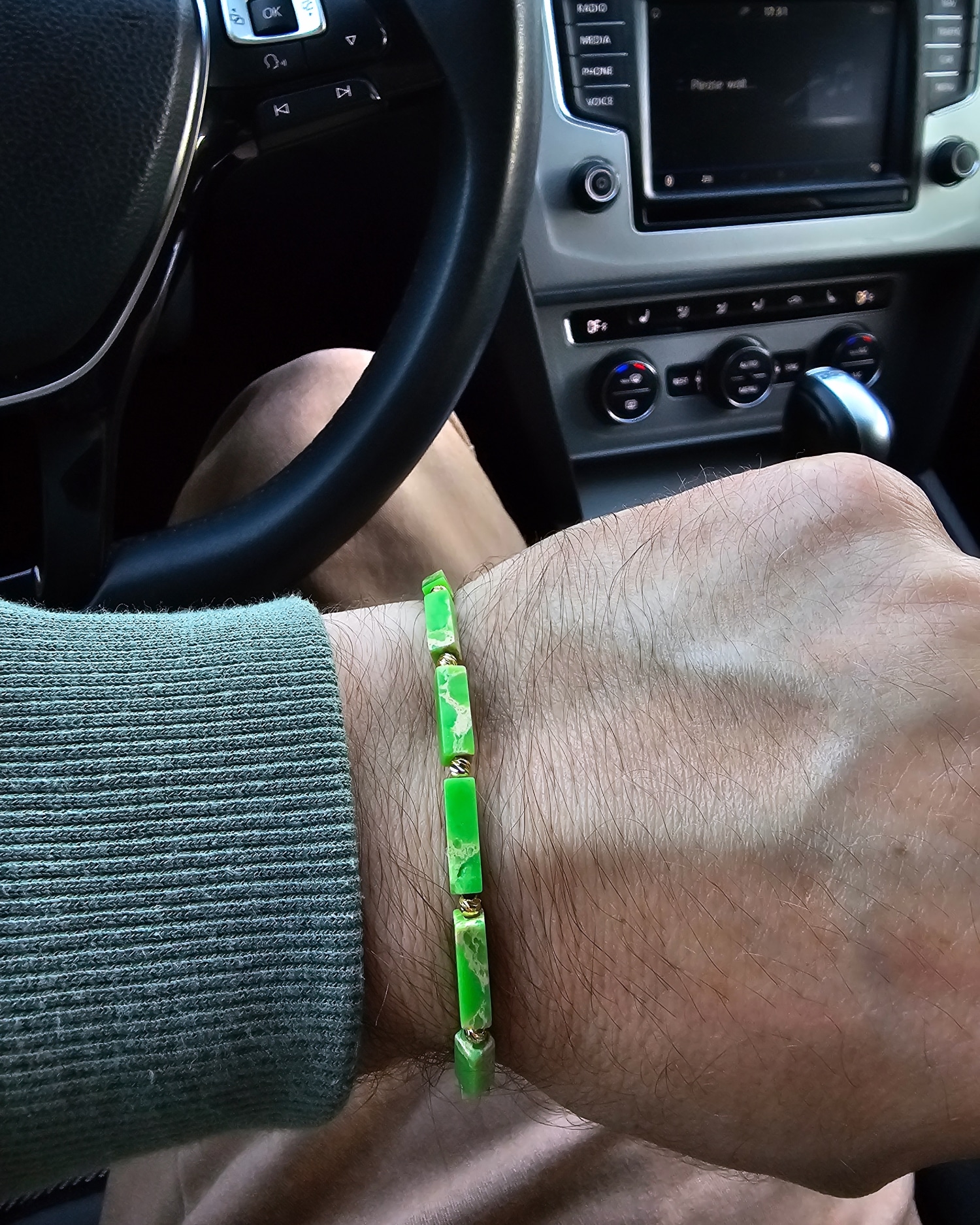 +2€ shippingMalachite stone bracelet with gold plated beads.